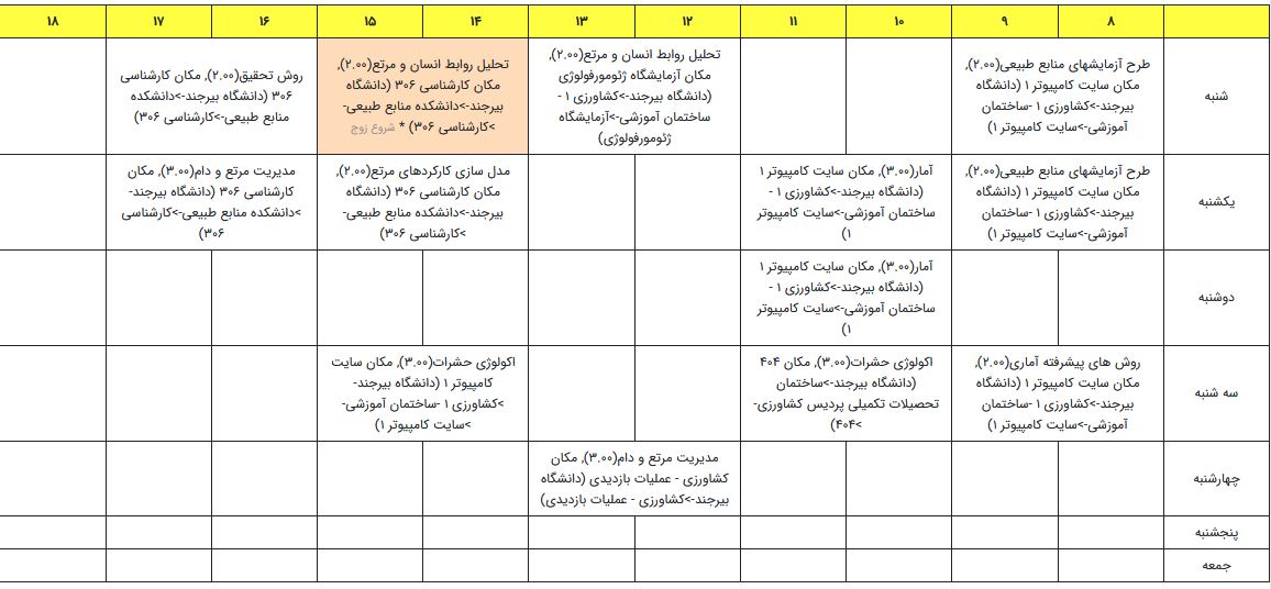 | دانشکده منابع طبیعی و محیط زیست | عضو هیئت علمی | رسمی قطعی | تمام وقت | ۱۵ |