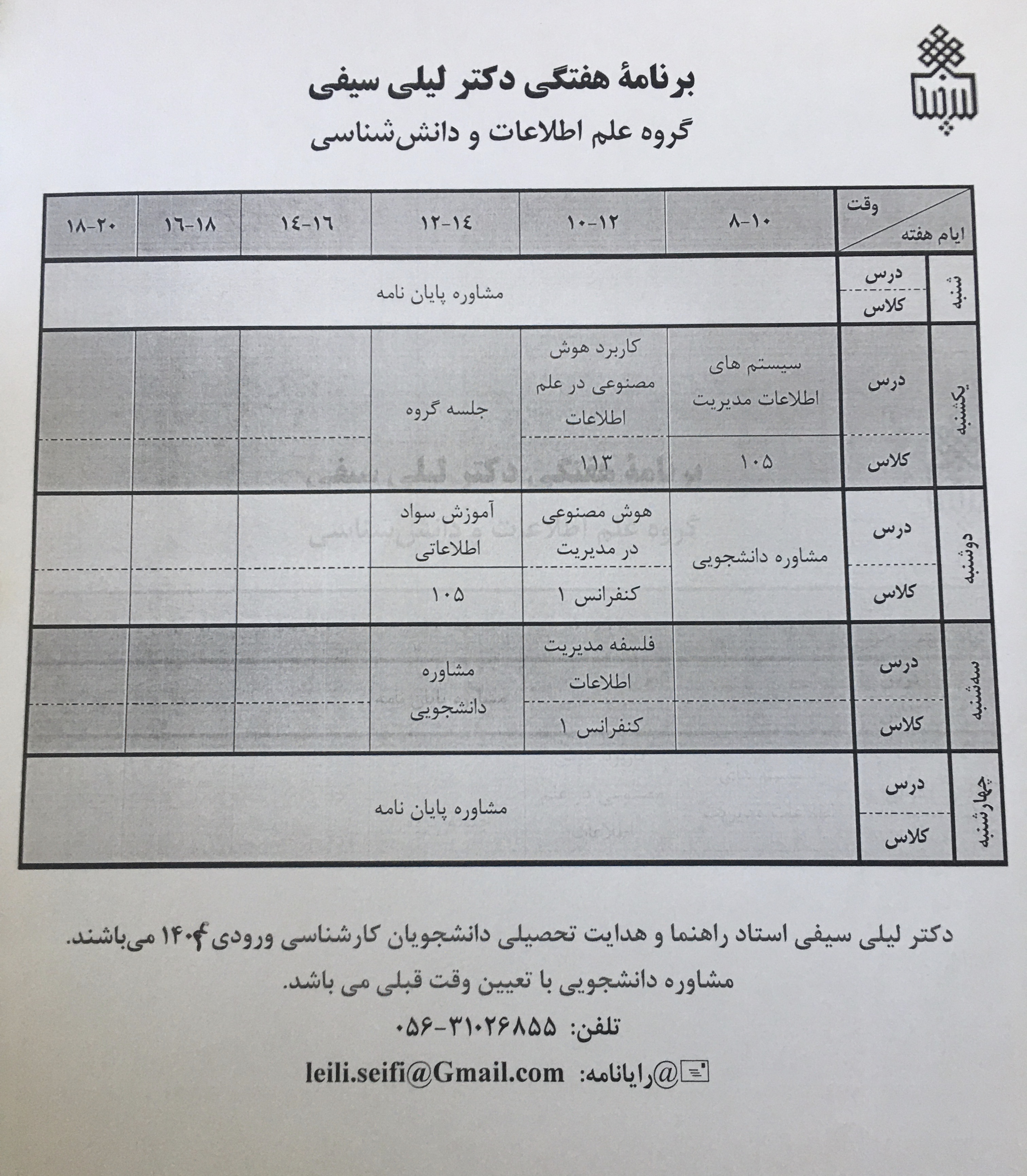 | گروه علم اطلاعات و دانش شناسی | هیئت علمی | رسمی آزمایشی | تمام وقت |